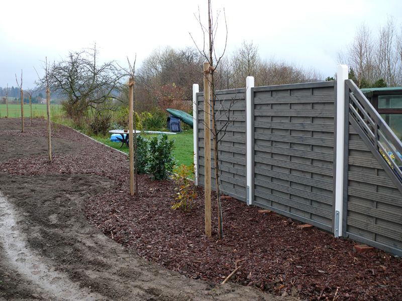 Was sich beim Preis total läppert sind die ganzen Dinge, die man zusätzlich zu den Elementen braucht wie Pfosten, Anker, Schrauben, Farbe… Da staunt man nachher wirklich nicht schlecht, wenn man den Gesamtpreis hört. D.h. wenn wir demnächst Grundstücke sehen, mit einer langen Reihe Sichtschutzelemente, dann wissen hier: Hier wohnen Millionäre. ;)